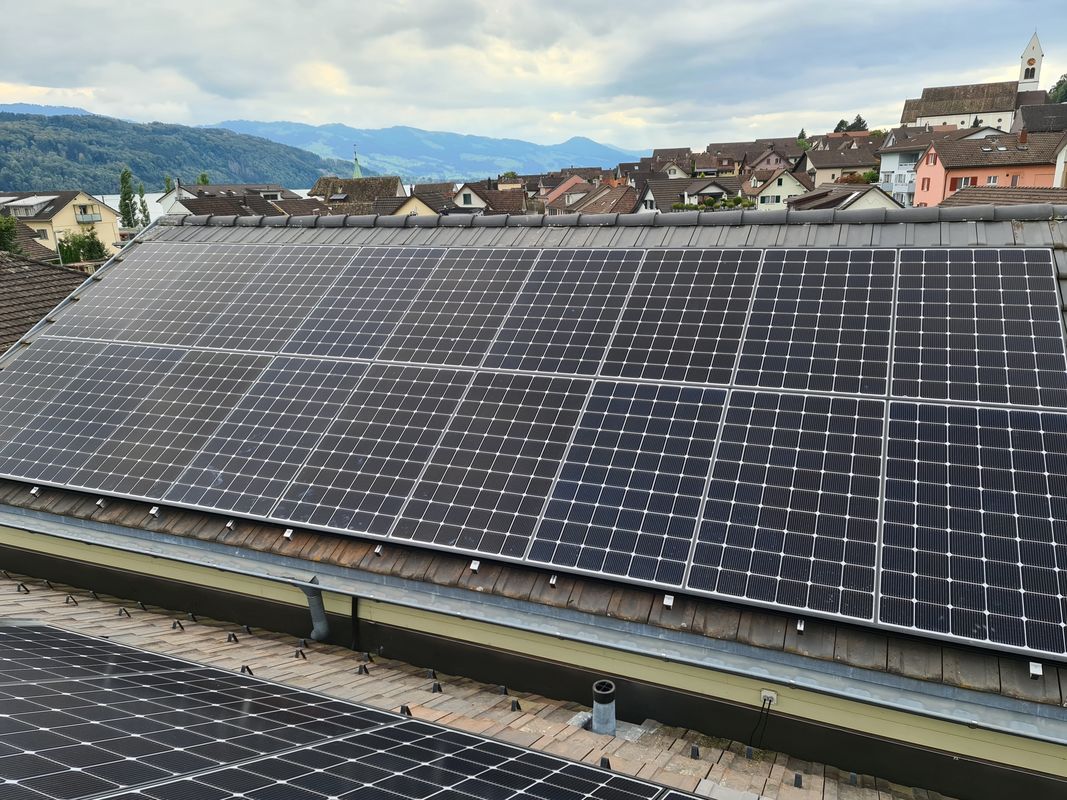 Mitten in Schmerikon entsteht auf drei Mehrfamilienhäusern eine Photovoltaikanlage auf einer Gesamtfläche von über 500 m2. Diese produziert Sonnenstrom für rund 12 Einfamilienhäuser oder 36 4-Zimmerwohnungen.