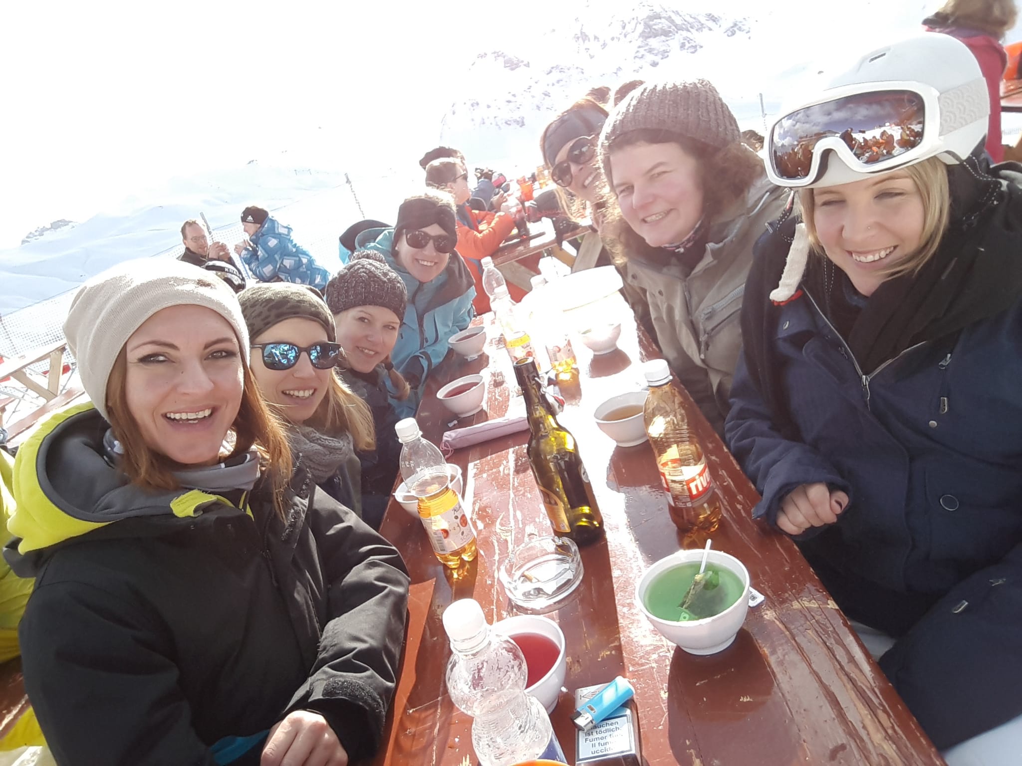 Dort angekommen wurden auch schon bald die Skier angeschnallt und es ging ab auf die Piste. Das Wetter war viel besser als erwartet und so konnte sogar das Mittagessen draussen in der Sonne genossen werden. Am Abend gab es dann ein feines Nachtessen auf der Berghütte und als Abschluss gab es sogar noch ein Bad im Hot Pot.