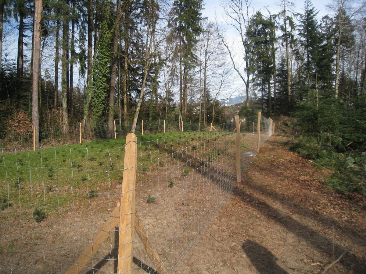 Zum Schutz vor Wildtieren werden die Tännlein von einem Zaun geschützt.
