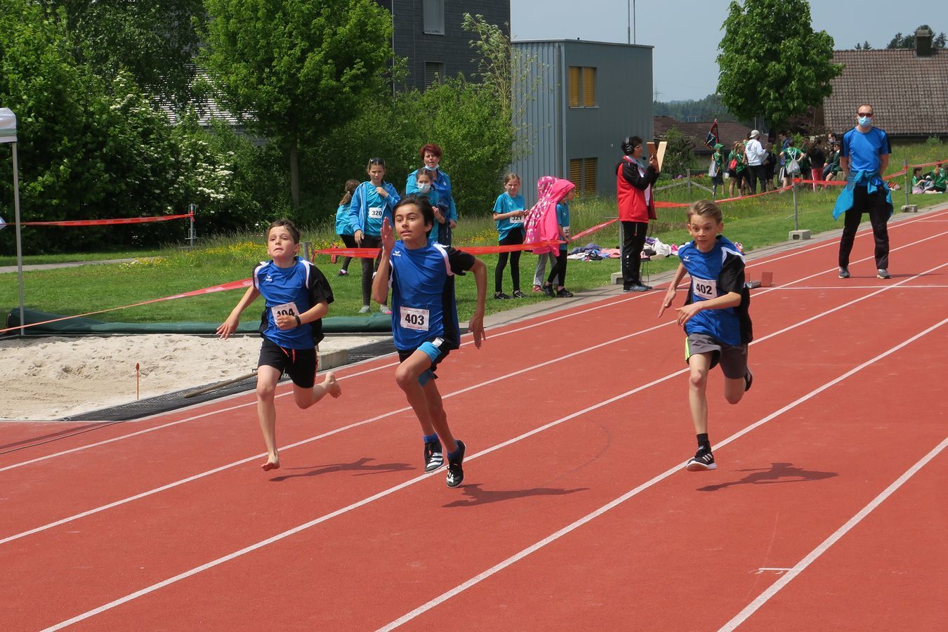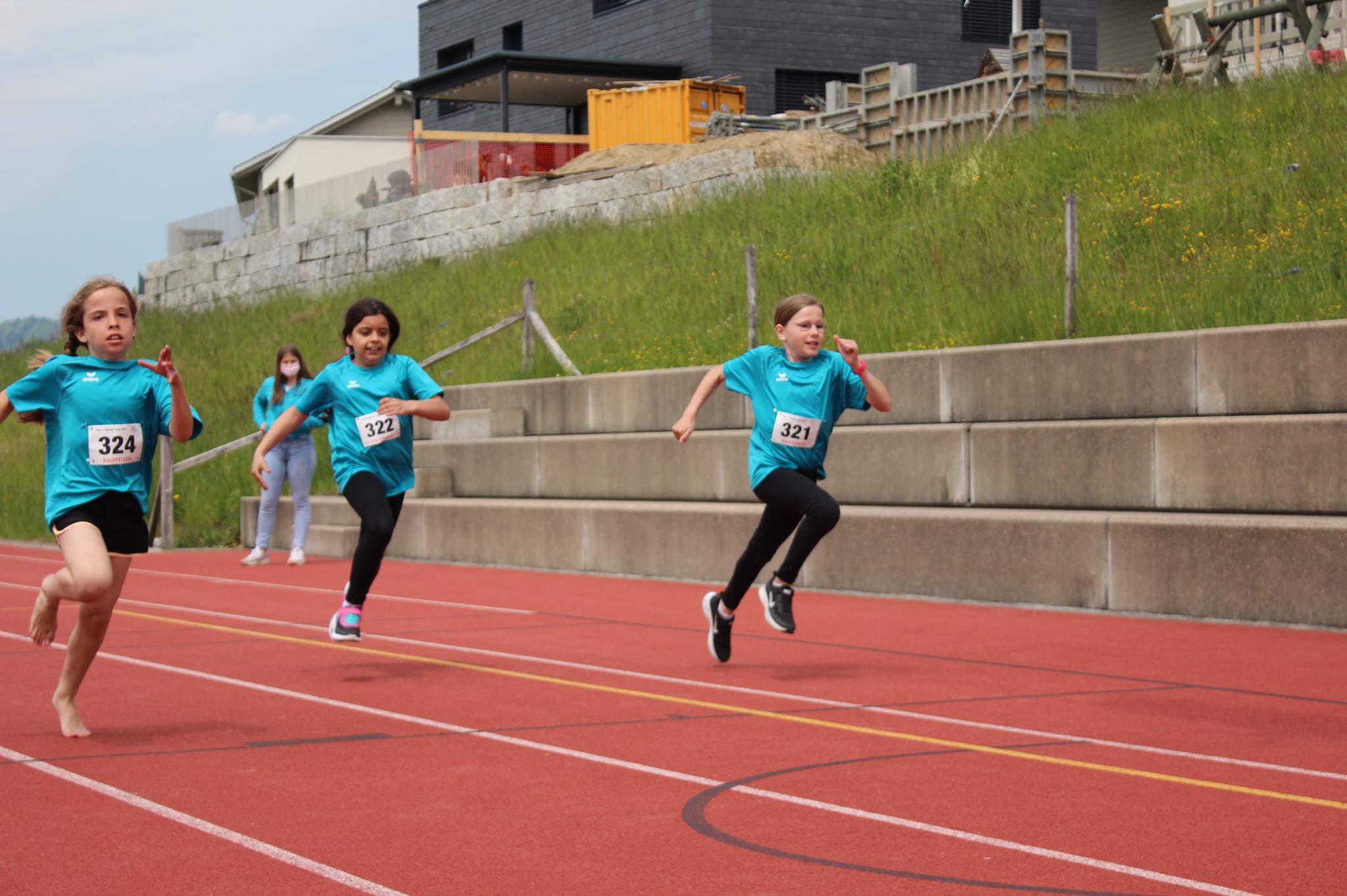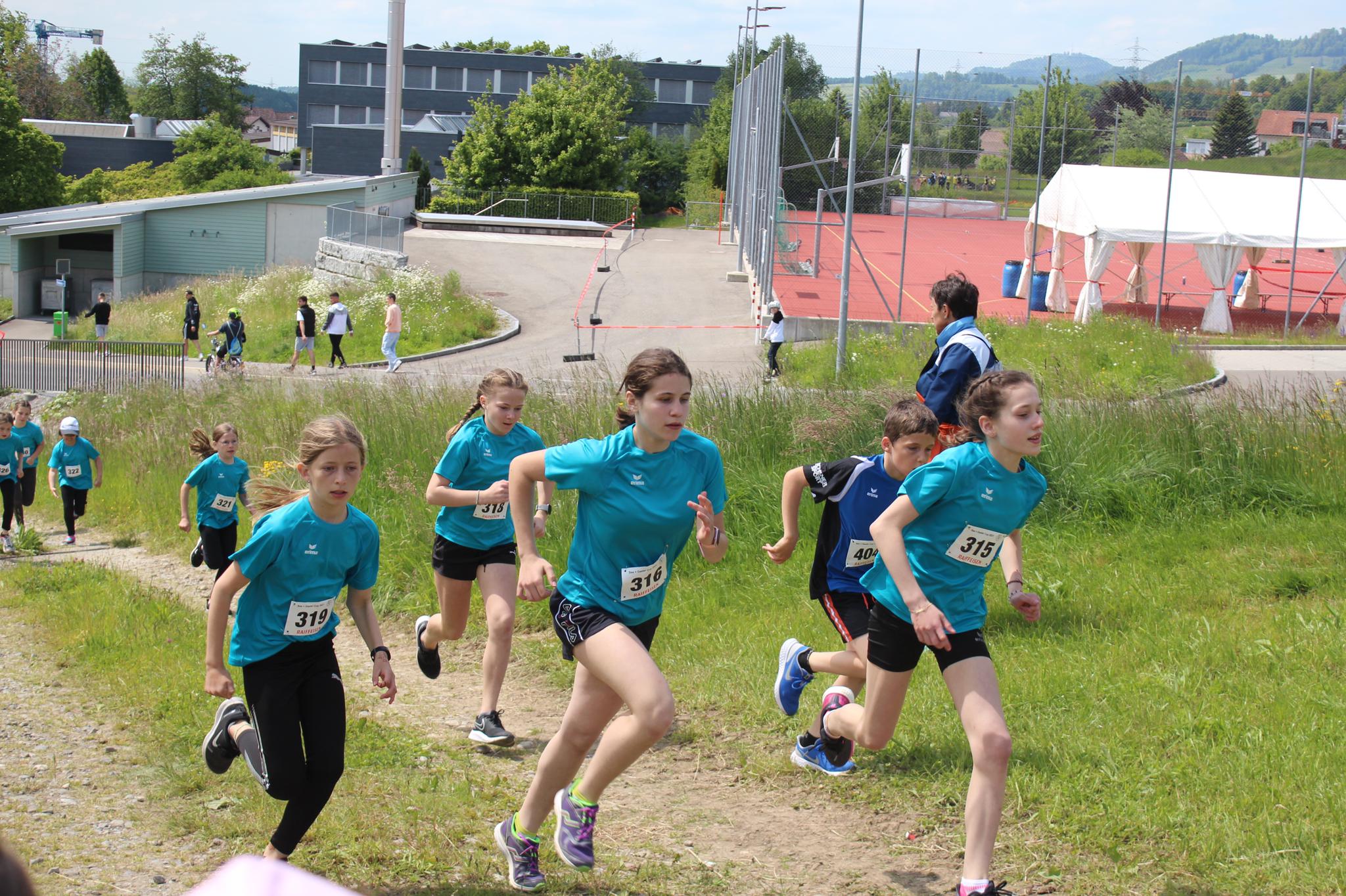 Für die älteren Teilnehmer galt es danach noch den 1000 Meter Lauf zu bewältigen. Dieser führte vom Sportplatz über die Strasse und Wiese bis in ein Wohnquartier. Man merkte den jungen Sportlern die Anspannung vor dem Start an. Nach dem Startschuss lieferten sich die Jungs und Mädels ein spannendes Rennen.
