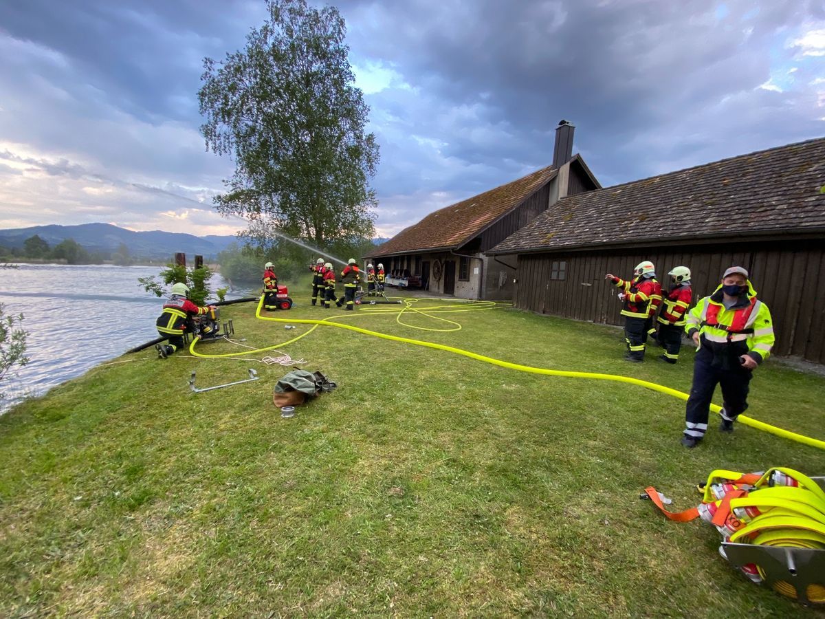 Um 19.15 Uhr war dann die letzte Massnahme, das Hydroschild zum Schutz von angrenzenden Gebäuden, im Einsatz.