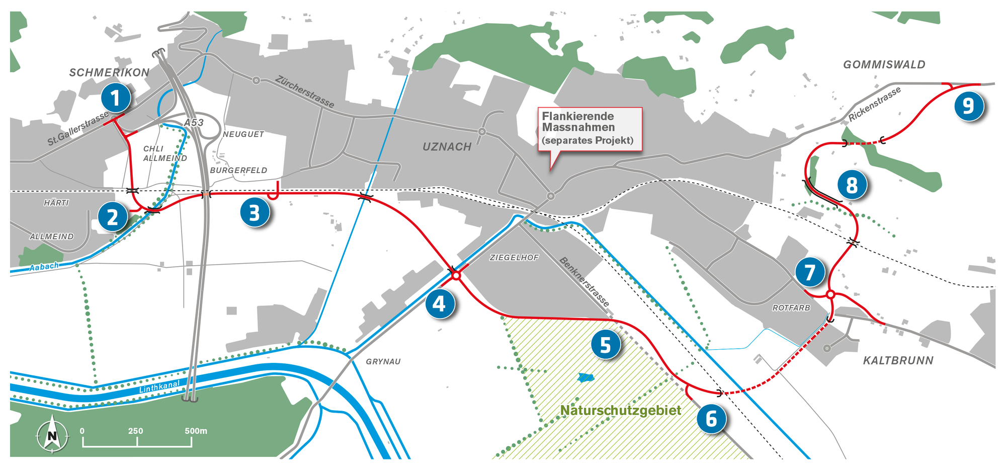 Das A15 Gaster Projekt ist aber noch nicht definitiv gesichert. Mit der Abstimmung zum Teilprojekt in Uznach im Herbst 2022 steht oder fällt das ganze Projekt. Ohne Projekt wird der Kanton auch das Teilprojekt in Schmerikon nicht an die Hand nehmen.