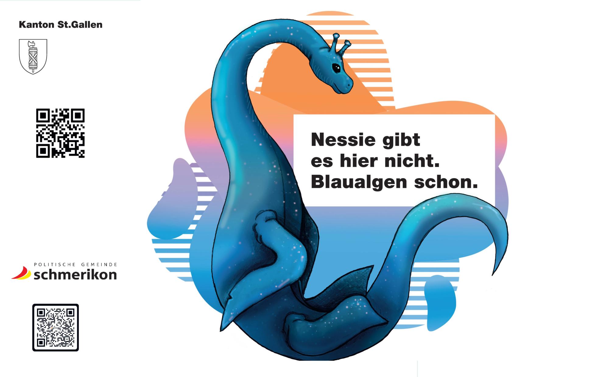 Tatkräftig unterstützt wurde Schmerikon vonseiten des kantonalen Amts für Wasser und Energie mit seinem Gewässerlabor. Das AWE entwickelte 2022 eine Monitoringstrategie, basierend auf periodischen Begehungen mit entsprechender Berichterstattung und Empfehlung an die Gemeinde. Es entwarf zudem mit den Kommunikationsverantwortlichen des Bau- und Umweltdepartements geeignete Plakate zur Sensibilisierung nach den Gefährdungsstufen «präventiv» bzw. «akut». Die Gemeinde informiert seit 2022 auf einer Informationsseite der eigenen Homepage unter dem Titel Kommunale Informationsstelle Blaualgen.