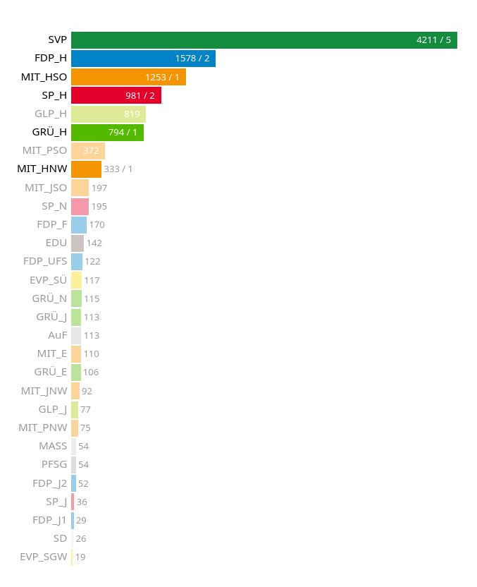 Die SVP gewinnt einen Sitz auf Kosten der GLP, welche für den Kanton St. Gallen nicht mehr im Nationalrat vertreten sind.