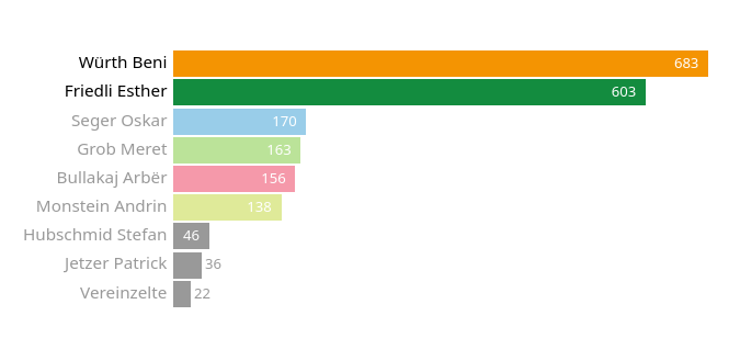 Die Schmerknerinnen und Schmerkner haben ihre Stimmen wie folgt verteilt: