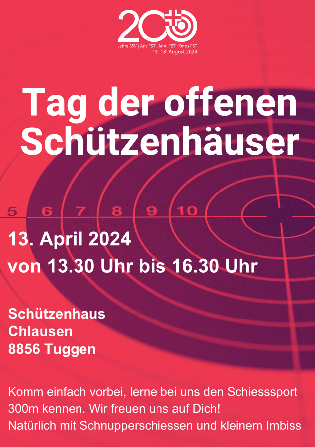 Der SV Schmerikon lädt die Öffentlichkeit herzlich zu einem Tag der offenen Schützenhäuser am Samstag, dem 13. April 2024 ein