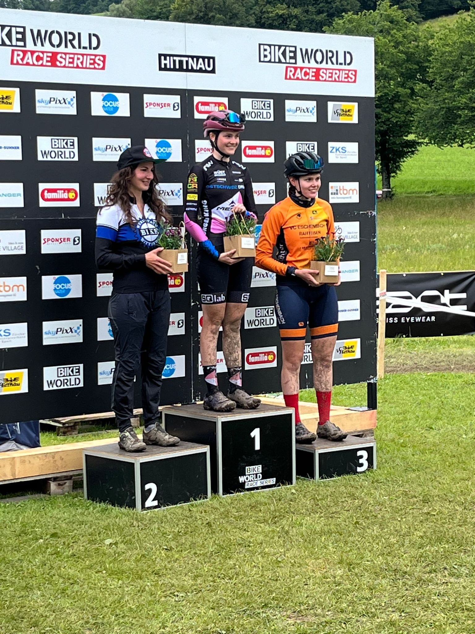 Laura startete mit dem Leadertrikot ins Rennen. Auch sie berichtet von einem sehr nassen und somit rutschigen Untergrund. Sie bestritten drei Runden, wovon sie die ersten beiden mit der Zweitplatzierten mithalten konnte. Danach musste sie jedoch abreissen lassen und konnte den 3.Platz ins Ziel fahren. Am Ende des Tages konnte sie das Leadertrikot um 10 Punkte verteidigen. Evelyn Stalder wurde 4.