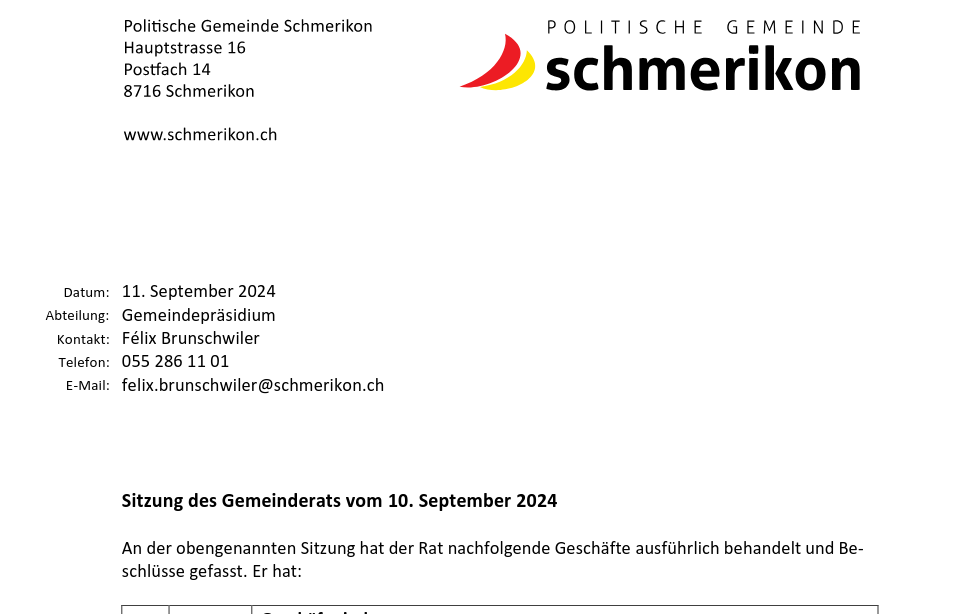 Sitzung des Gemeinderats vom 10. September 2024Sitzung des Gemeinderats vom 10. September 2024