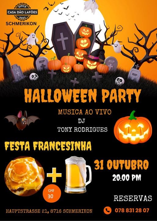 - In der Bäckerei & Café Ruby (scheint neu Casa Dão Lafões zu sein, ehemals Krone) steigt ab 20:00 Uhr die portugiesische Halloween-Party. DJ Tony Rodrigues sorgt für die Musik.