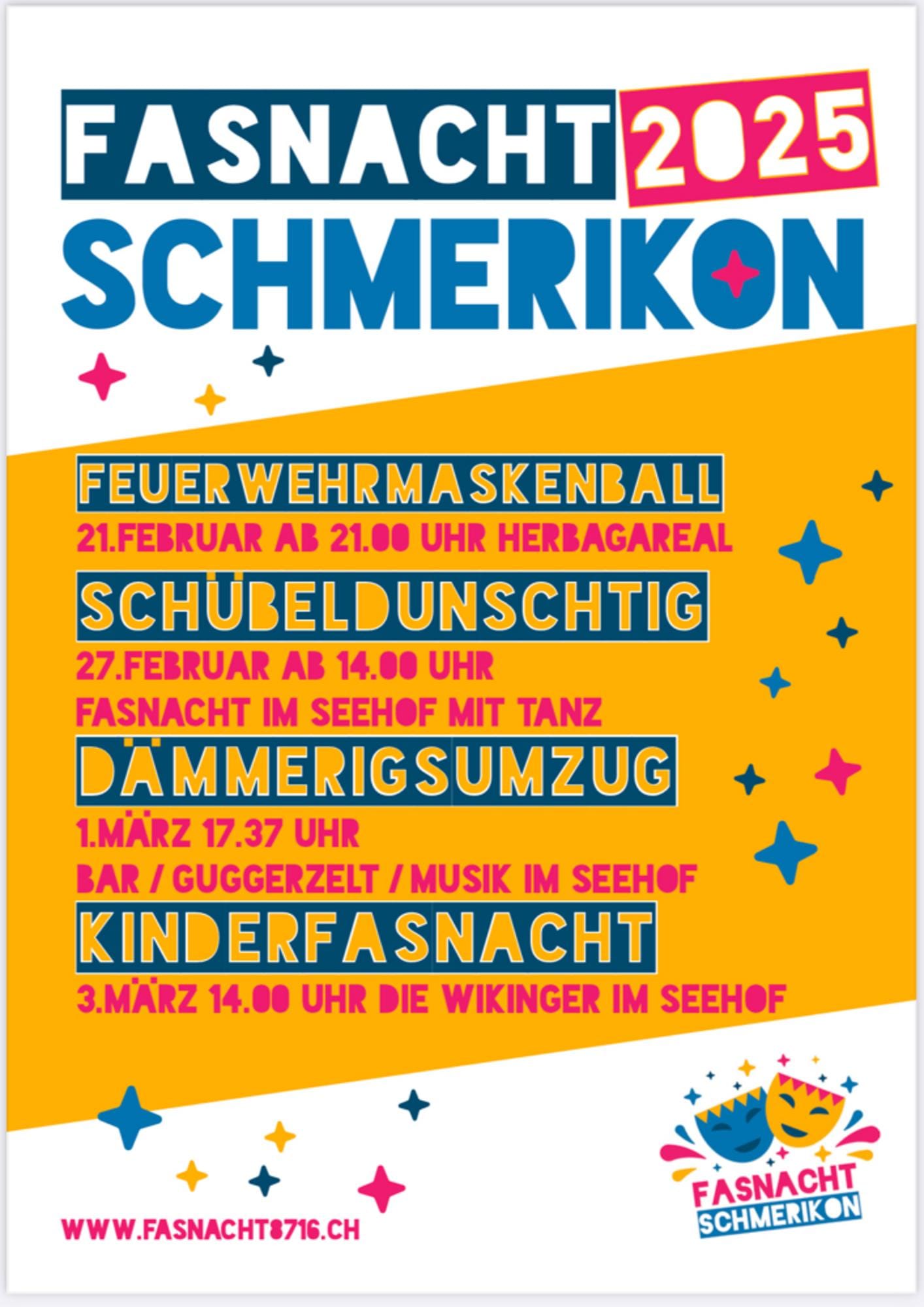 Am Donnerstag, 27. Februar 2025 um 14:00 Uhr startet im Restaurant Seehof in Schmerikon der «Schübeldunnschtig». Für musikalische Unterhaltung sorgt unter anderem der Chor Virokantas. Auch ein Programmpunkt steuern die Kinder der 4. Klasse von Frau Soto & Frau Wespe bei. Alles Weitere: Suprise!