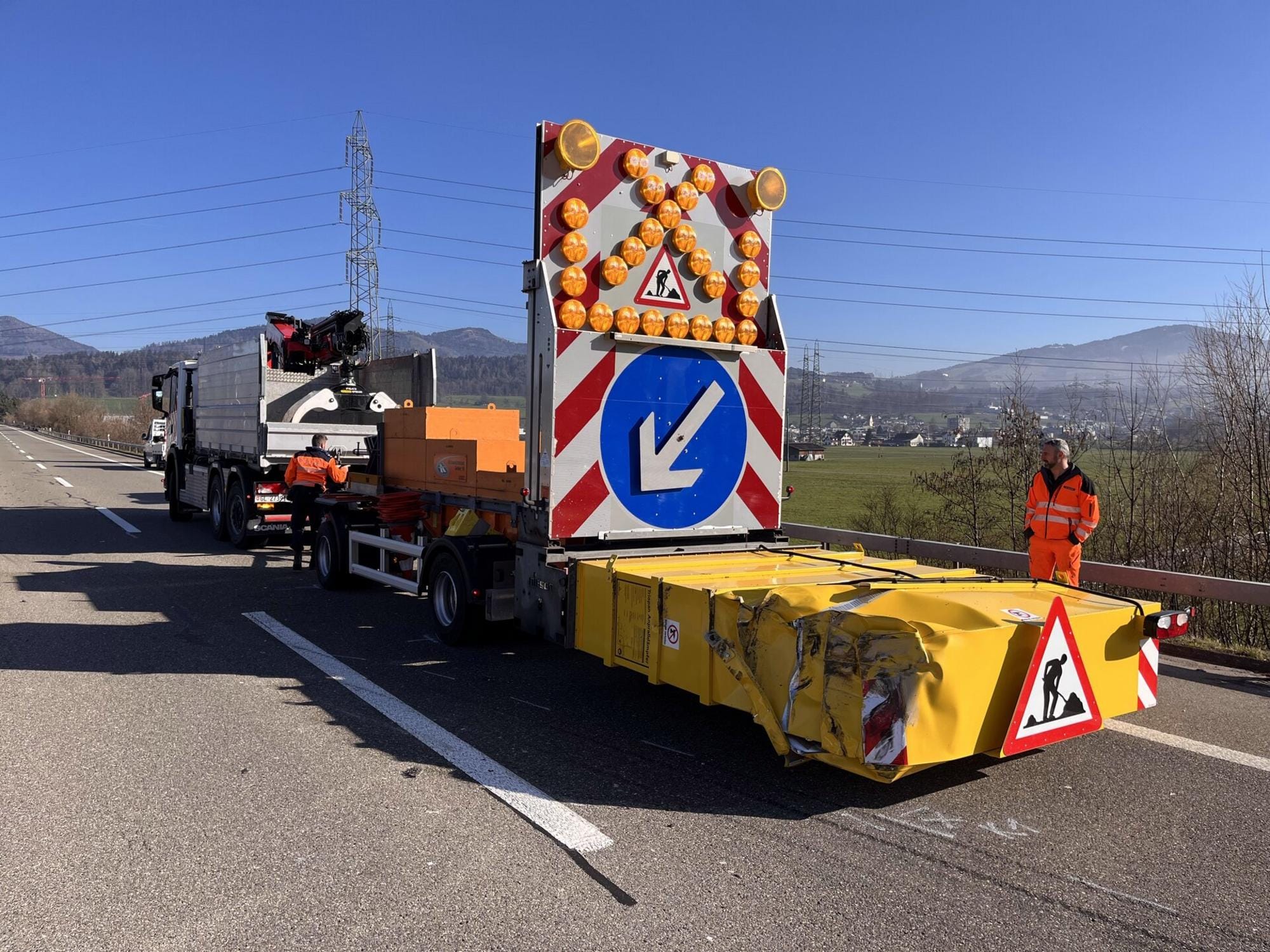 Ein 51-jähriger Mann fuhr mit einem Lastwagen auf der Autobahn A15 von Reichenburg in Richtung Hinwil. Auf Höhe Buechbergtunnel wurde die Geschwindigkeit der Strecke durch den Unterhaltsdienst reduziert und die rechte Fahrbahn zusätzlich gesperrt. Trotz Signalisierung fuhr der 51-Jährige mit seinem Lastwagen auf der gesperrten Fahrbahn weiter. Auf Höhe Autobahnüberführung stand ein Prellbock-Anhänger des Unterhaltsdienstes. Der 51-Jährige prallte mit seinem Lastwagen in die linke, hintere Ecke des Prellbock-Anhängers und lenkte den Lastwagen anschliessend auf die linke Fahrbahn. Durch das Ausweichmanöver und den Zusammenprall mit dem Prellbock-Anhänger kippte der Lastwagen auf die linke Seite auf die Mittelleitplanke. Der Lastwagenfahrer wurde dabei leicht verletzt. Er wurde vom Rettungsdienst ins Spital gebracht. Ein Teil des im Lastwagen geladenen Bohrschlamms lief im Bereich der Mittelleitplanke aus und musste zusammen mit einem Teil des restlichen Inhalts des Lastwagens abgepumpt werden. Der entstandene Sachschaden beläuft sich auf mehrere zehntausend Franken. Der Streckenabschnitt war vorübergehend gesperrt. Im Einsatz standen neben mehreren Patrouillen der Kantonspolizei St.Gallen und dem Rettungsdienst, die zuständigen Feuerwehren und der National-Unterhaltsdienst VI.