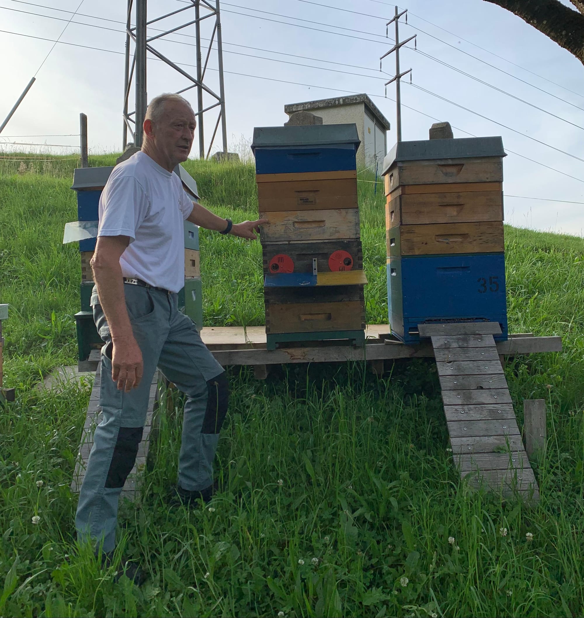 Seit 10 Jahren imkert Wisi und hat den Imkerkurs im Jahr 2019/2020 absolviert. Als Wanderimker startete er mit den Bienenvölker am Winterstandort Schmerikon und Tuggen. Dass die Bienen genügend Futter haben, wird der Standort gewechselt, Wald- Blumen und Alp, bis 1350 meter ü.M.so können verschiedene mögliche Honigsorten ohne Stress eingetragen werden. Die Biodiversität und die Landwirtschaft sind auf den Imker und die von ihm betreuten Bienen angewiesen. Mit den Produkten von Honigbienen wird einen grossen Beitrag zur gesunden Nahrung hergestellt, dielandwirtschaftlichen Ernten werden verbessert und stabilisiert. Beim Imkerspielen daher Empathie und Respekt eine sehr große Rolle.
