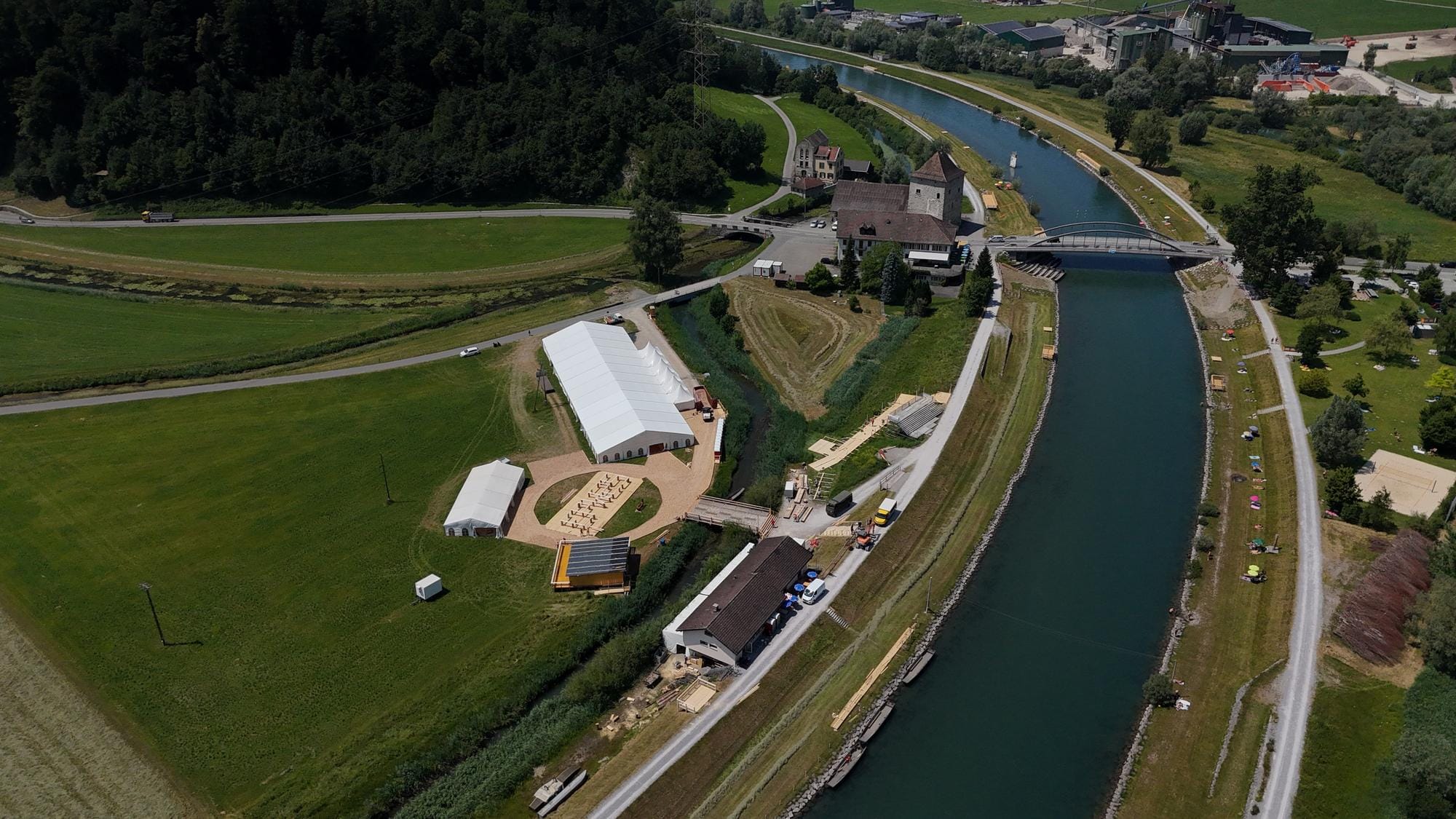 42. Eidgenössisches Pontonierwettfahren 2025 an der Linth: Der Festaufbau hat begonnen