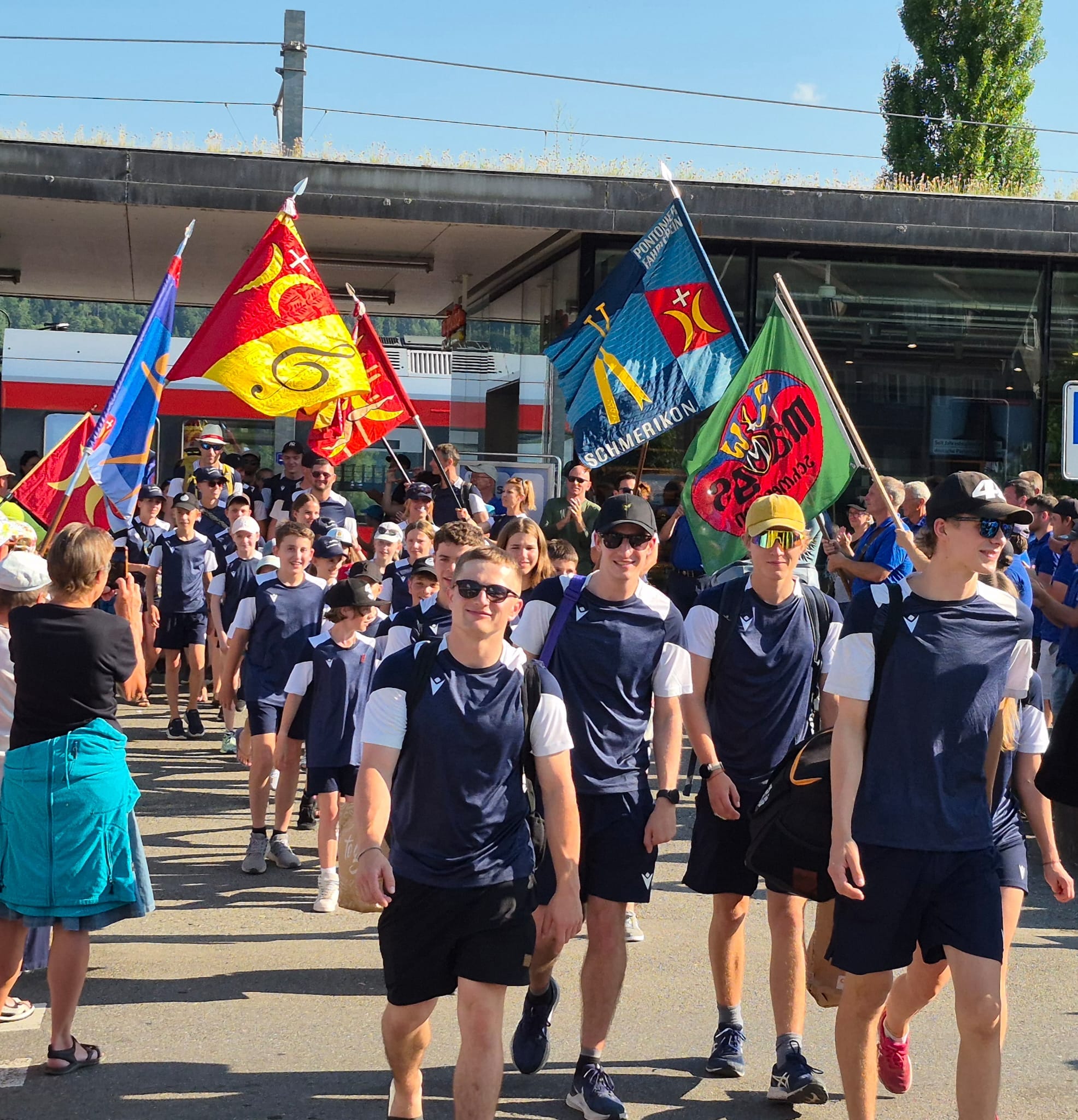 Am Sonntag, 22. Juni 2025, wurde durch den Verkehrsverein Schmerikon der Empfang des Turnvereins beim Bahnhof Schmerikon organisiert. Der Anlass wurde von Alphornbläsern und kurzweiligen Ansprachen begleitet. Es war ein bewegender Moment, als die Aktiven des Turnvereins und unser Nachwuchs gemeinsam beim Bahnhof Schmerikon eintrafen und von vielen Zuschauern und Vertretern anderer Vereine erwartet wurden. Wir bedanken uns herzlich beim Verkehrsverein Schmerikon für das Organisieren des Empfangs. Weiter möchten wir auch der politischen Gemeinde und der Ortsgemeinde unseren Dank für die finanzielle Unterstützung hinsichtlich dieses Anlasses aussprechen. Viele Personen haben zudem beim Betreuen und der Organisation für diesen Anlass, wie auch bei Einsätzen als Kampfrichter ehrenamtlich einige Zeit aufgewendet und viel Arbeit geleistet. Unser Dank gebührt auch diesen Personen, da die Teilnahme von Nachwuchs und Aktiven beim Eidgenössischen Turnfest ansonsten nicht möglich gewesen wäre.
