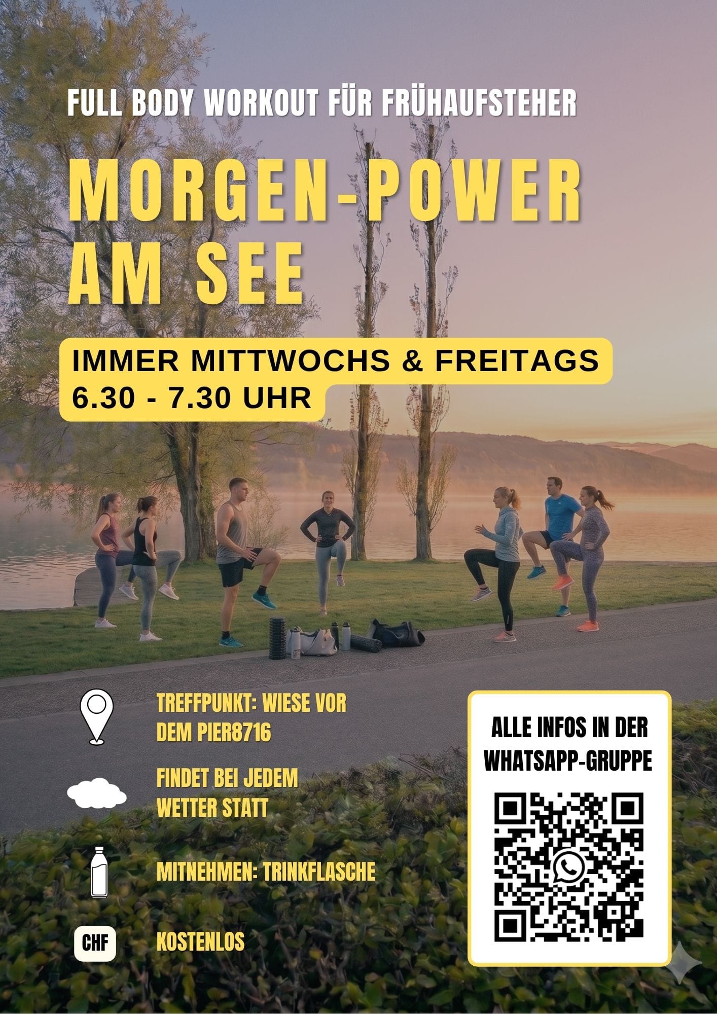 Das Angebot richtet sich an alle, die motiviert und voller Energie in den Tag starten möchten. Das Full Body Workout findet bei jedem Wetter unter freiem Himmel statt und bietet die perfekte Mischung aus Kraft, Ausdauer und frischer Seeluft.