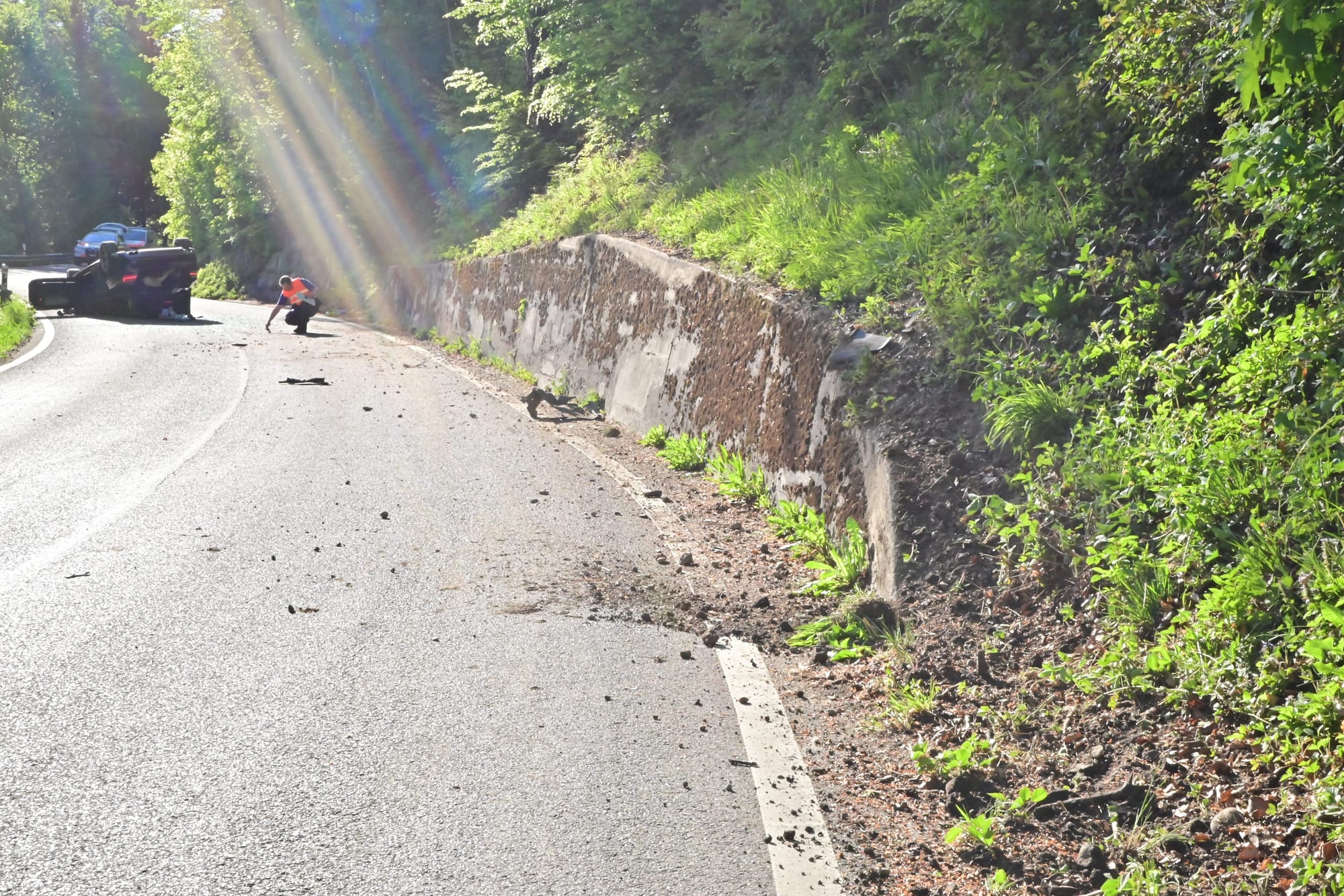 Am Samstagnachmittag (25.04.2026) ist ein 47-jähriger Mann mit seinem Auto auf der Neuen Eschenbacherstrasse verunfallt. Das Auto überschlug sich und kam auf dem Dach liegend zum Stillstand. Der 47-Jährige sowie sein 38-jähriger Mitfahrer wurden beide verletzt. Der Rettungsdienst brachte die beiden Männer ins Spital.